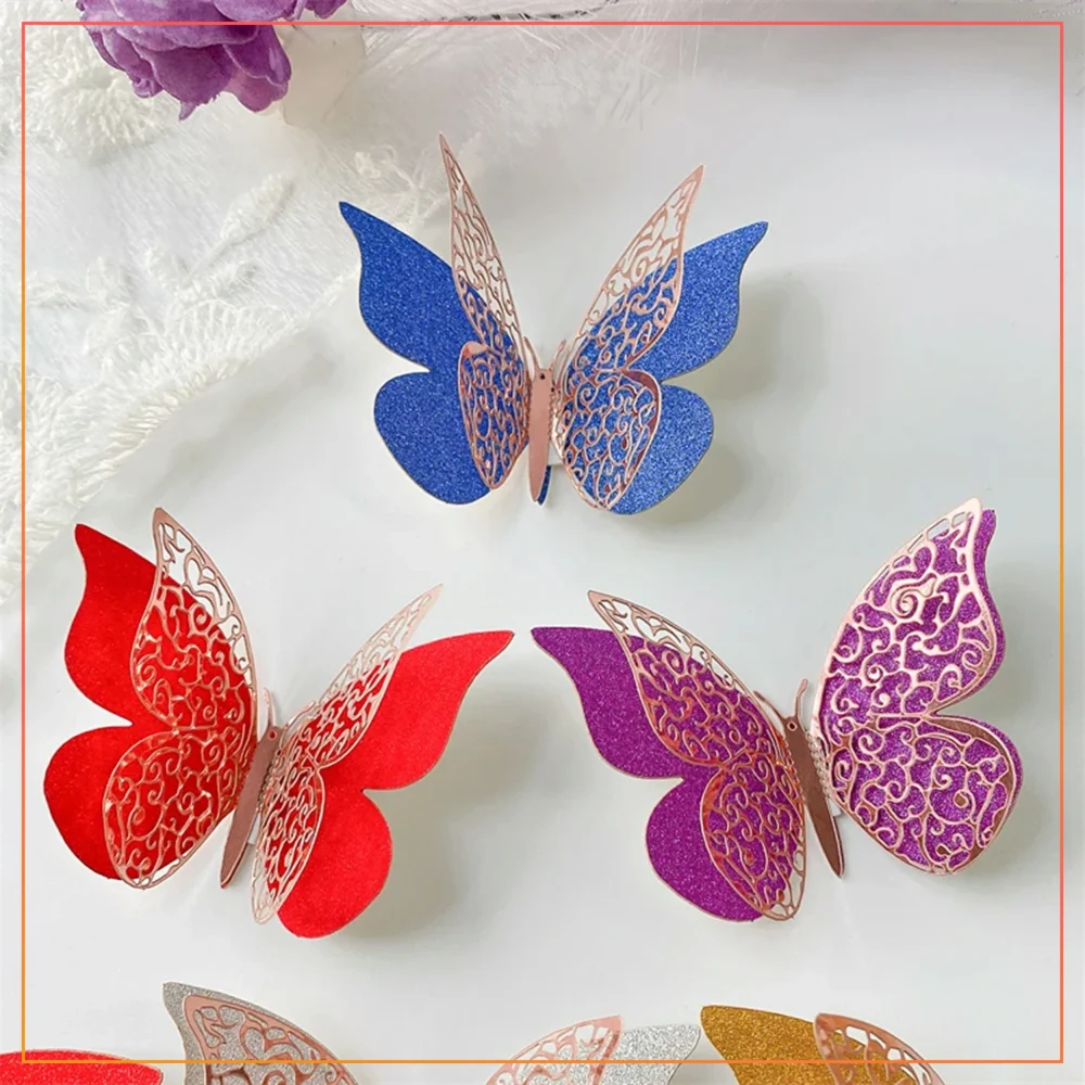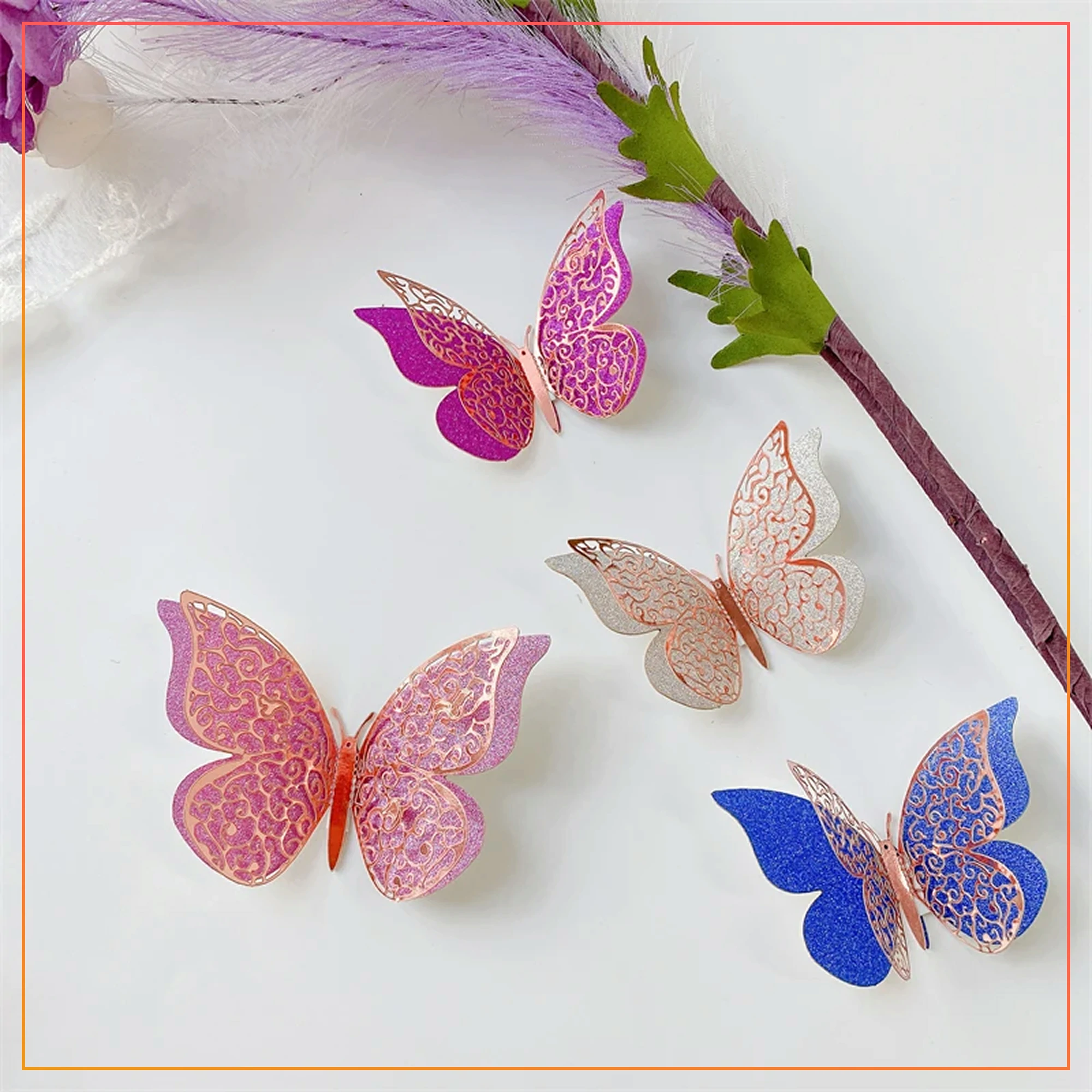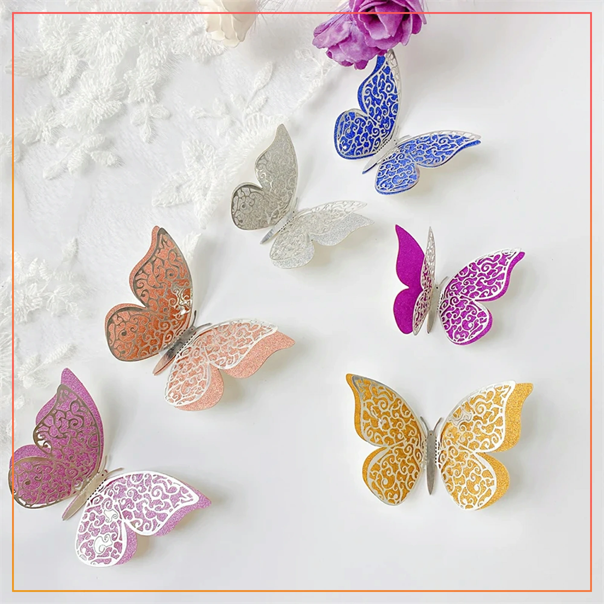 - Product Name:12pcs Double-Layer Glitter Butterfly Decoration Set – Multicolor Assortment for Elegant Wall Décor.