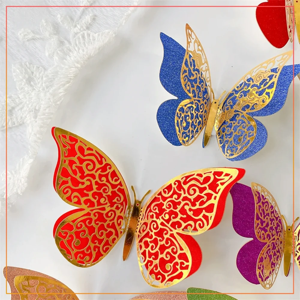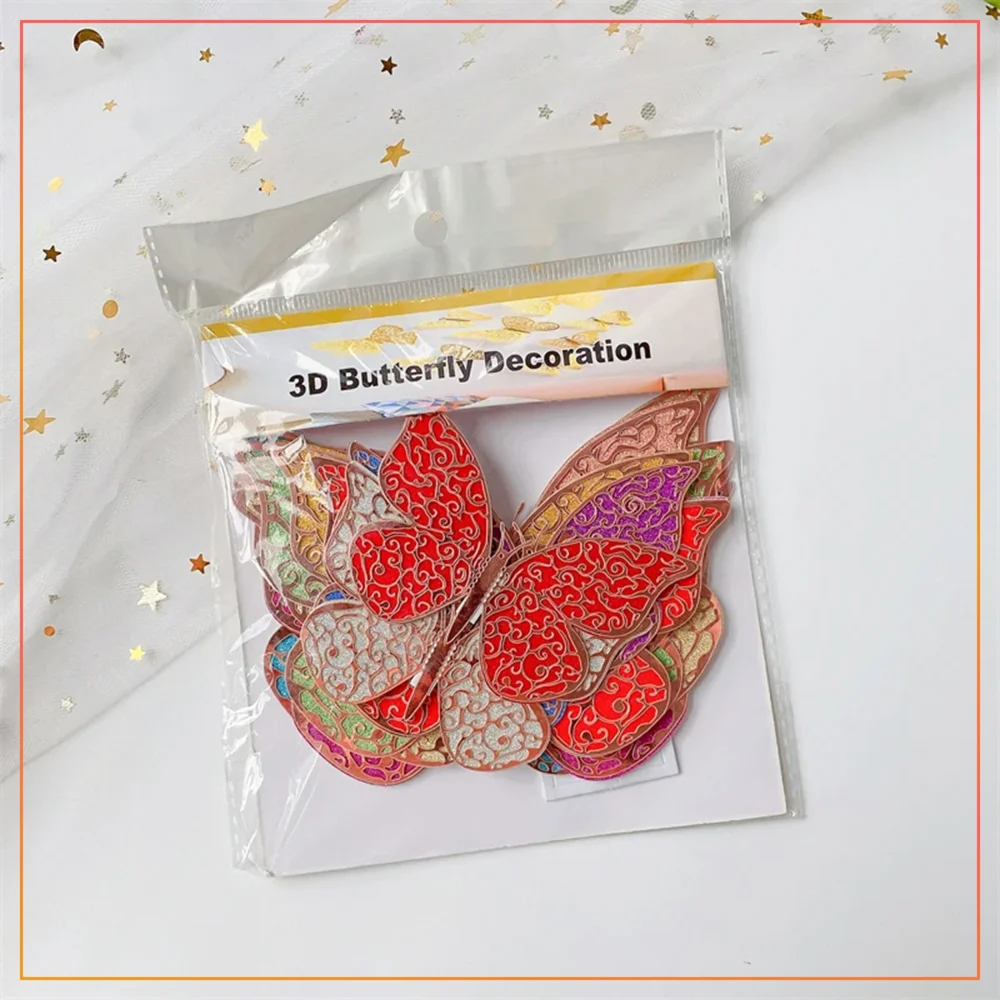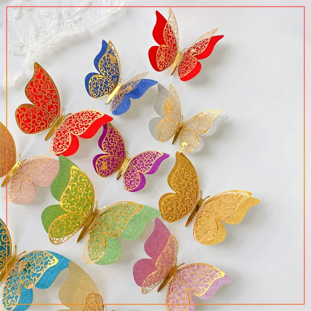 - Product Name:12pcs Double-Layer Glitter Butterfly Decoration Set – Multicolor Assortment for Elegant Wall Décor.