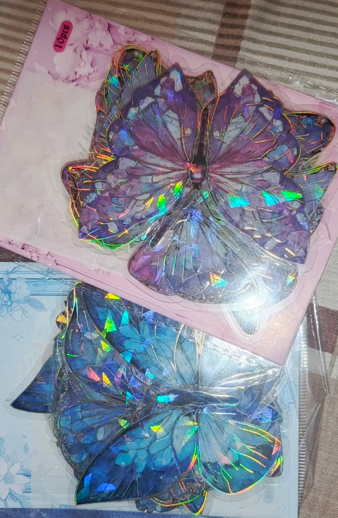 - What’s in the Box: 20pcs x holographic butterfly stickers (2 Colors) + 20pcs x Double Tape