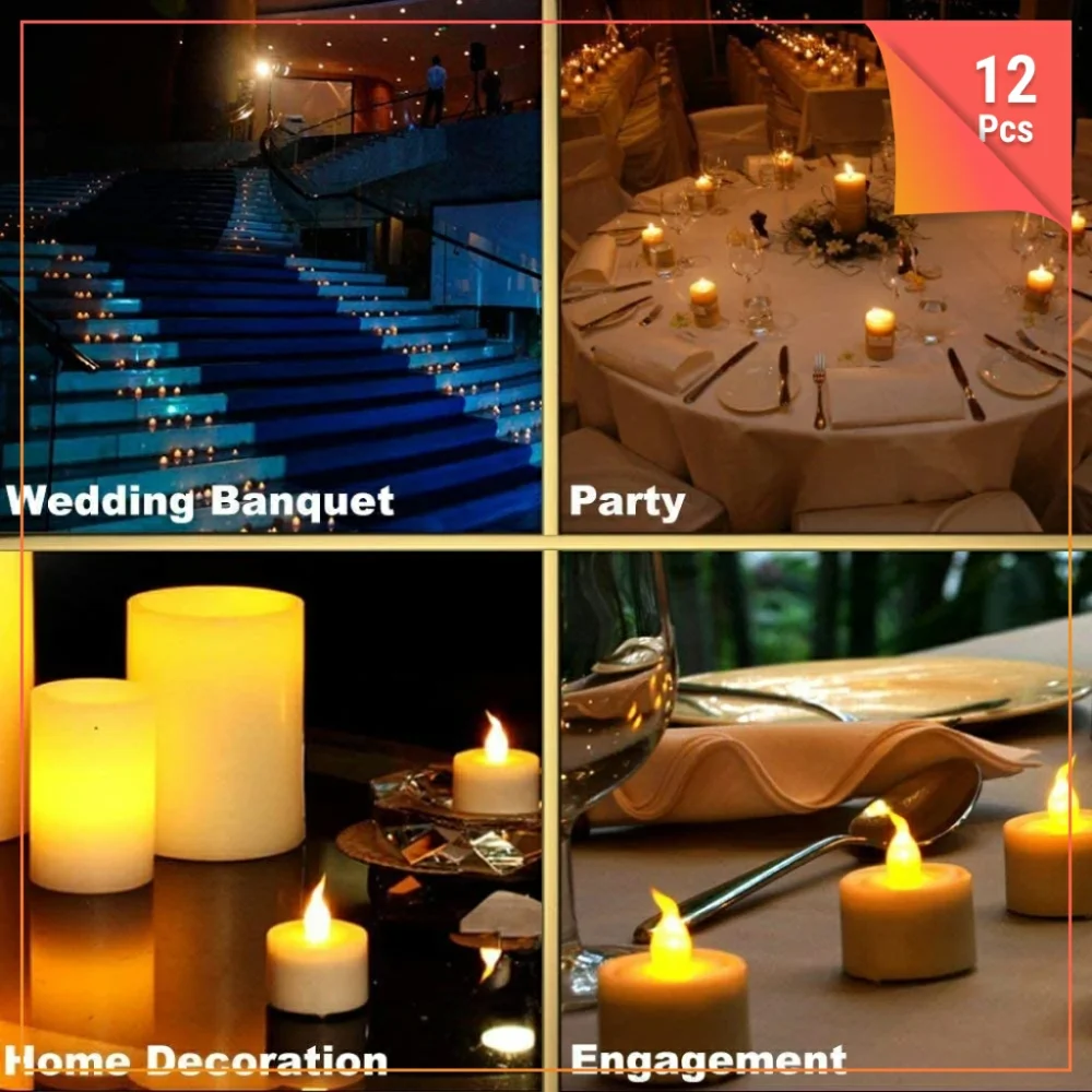 Pack of 12 Mini Warm LED Tea Light Candle Battery Operated LED Flame Less Candles